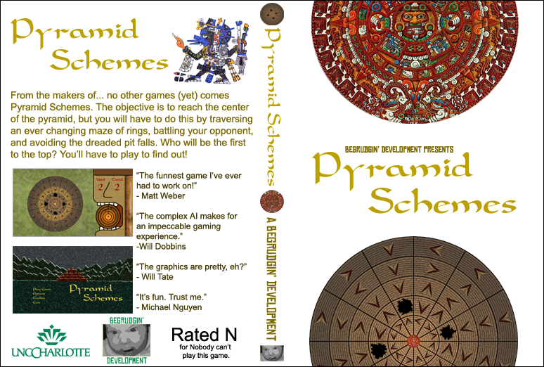 “Pyramid Schemes” is a video game I helped create with three other students while in college at UNC Charlotte. I worked with one other student to create the concept before this project began.